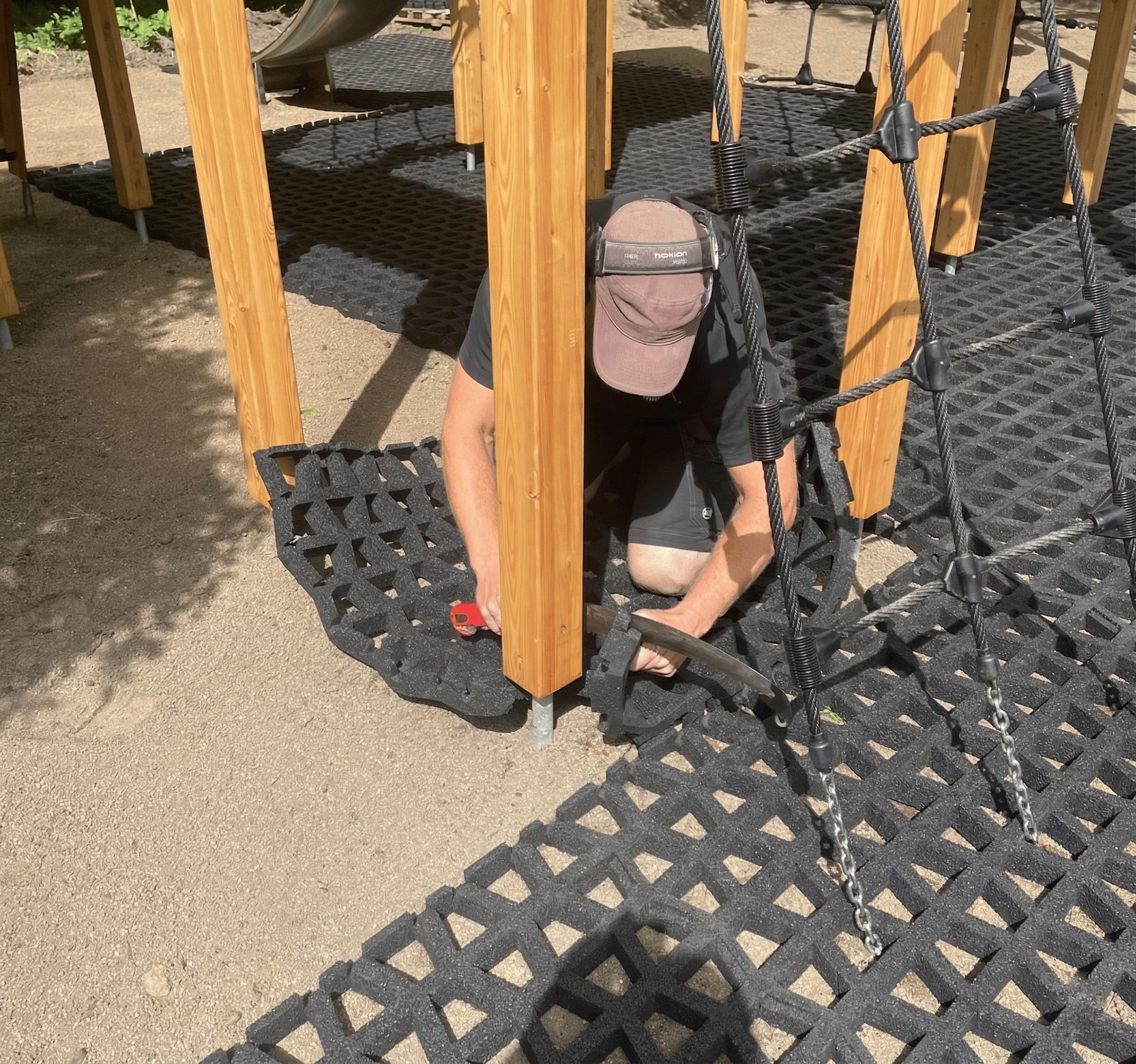 Nordic Rubber Mats är ett certifierat fallskydd av återvunnet gummi med en öppen struktur som låter gräs och blommor växa igenom. Resultatet är en grön, levande yta som uppfyller krav på tillgänglighet och säkerhet, utan att kompromissa med miljön.