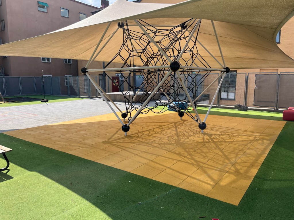 Gummiplattor kan användas på lekplatser, utegym och andra utomhusytor. Fallskyddsplattorna passar på många olika ytor som har krav på fallskydd. Det fasta materialet skapar är lätt att arbeta med och har god tillgänglighet – så att fler kan vara med och leka.
